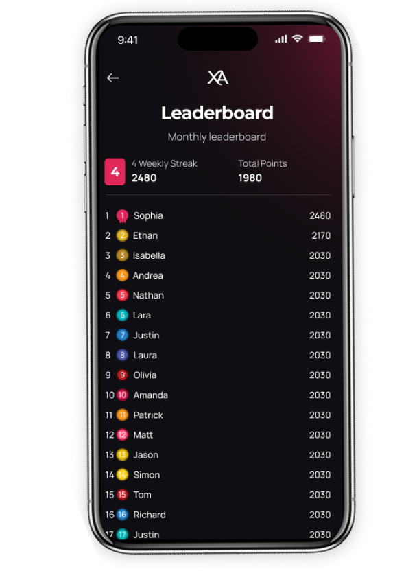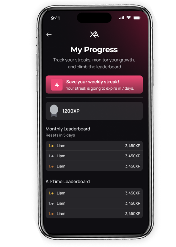 Hit milestones, receive nudges, and keep momentum. XA’s accountability layer makes consistency effortless.
